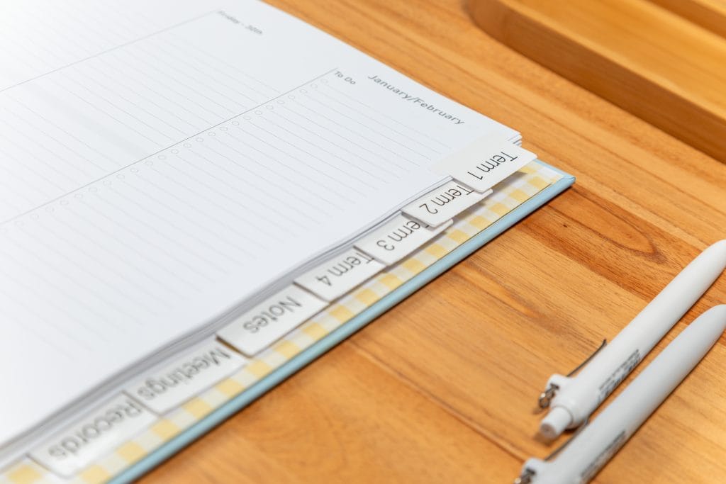 Add tabs throughout your planner, spacing them evenly so everything’s easy to find at a glance.